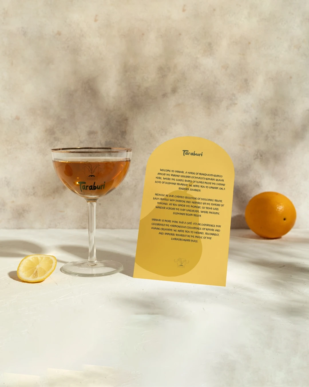 Taraburi had been running in Phuket since many years but their branding needed a makeover. We curated a new brand, visual identity, typography and related cohesives for their menu, merchandise, signature drinks and hoardings
